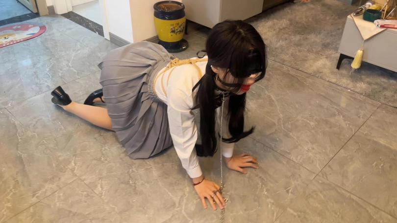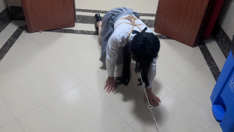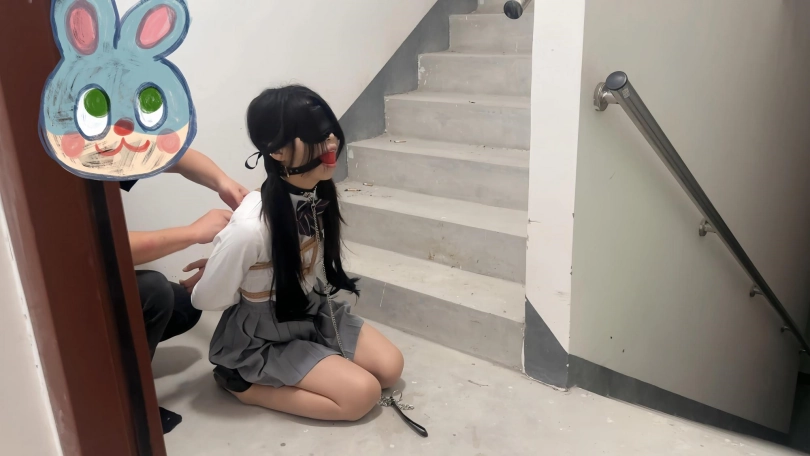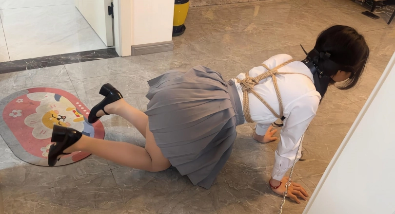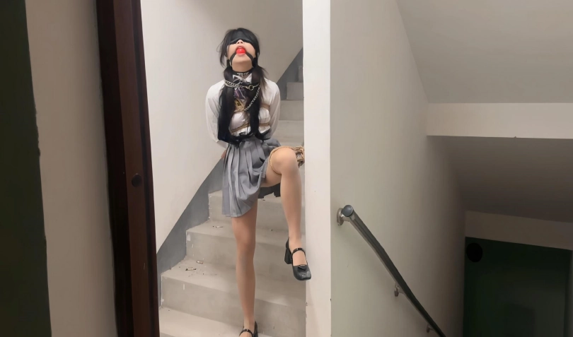 宝贝买了套新jk,本来打算牵到外面遛狗溜一圈回来,哪儿知大叔把丫丫遛到楼梯间的时候突然拿出绳子三下五除二就把她在楼梯间单腿吊了起来,然后放上东西之后就回家吹空调去了,留丫丫一个人在哪儿又爽又不敢发出太大的动静,怕邻居听见,只能不停的咬着口球喘息,无赖至极的感觉!!!