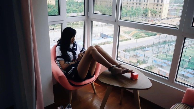 安艺真的是大长腿美人,不过似乎是个冰美人哎,冰美人和镣铐更配哦!!!在飘窗前玩镣铐,万一被看到怎么办???哈哈哈也许路人会认为有个美女被囚禁了吧!!!