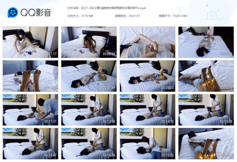 【视频时长】:00:21:56 【文件大小】:406MB 关键词:彩云 驷马镣铐自缚 被男朋友发现 玩耍 TK 手铐 脚铐 脚趾铐 蕾丝内衣 帆布鞋 棉袜 袜子堵嘴 妹子一个人在家,看到了床上的镣铐,心想玩点刺激的事情,于是,脱下鞋袜,用袜子堵嘴,戴上脚铐、脚趾铐,把一只脚用铁链拴在架子上。自己把自己锁成驷马铐,手腕脚腕趾铐锁住,把钥匙放在身边。妹子先是自己这样开心的玩了一会,各种扭动。当妹子差不多玩够了,打算用钥匙解开自己。但是妹子发现自己解开有难度,就在尝试中,钥匙掉在了地上。这下妹子可尴尬了,要是男朋友回来了,那太尴尬了,很着急。过了一会,男朋友回来了,以为来了坏人,十分着急的走到跟前,拿掉袜子。之后发现,原来是她自己在玩耍,于是男朋友拿走了钥匙,打算以后一起玩。挠脚心娱乐一下,然后离开,戴上口球和眼罩,留下妹子独自玩耍。妹子没有了钥匙怕是只能在着趴着了,看不见也说不出话,只好享受束缚的刺激感了。 妹子第一次尝试啦!!!处女作!!! ![]() ![]() ![]() ![]() ![]() ![]() ![]() ![]() ![]() ![]() ![]() ![]() ![]() ![]() ![]() ![]()