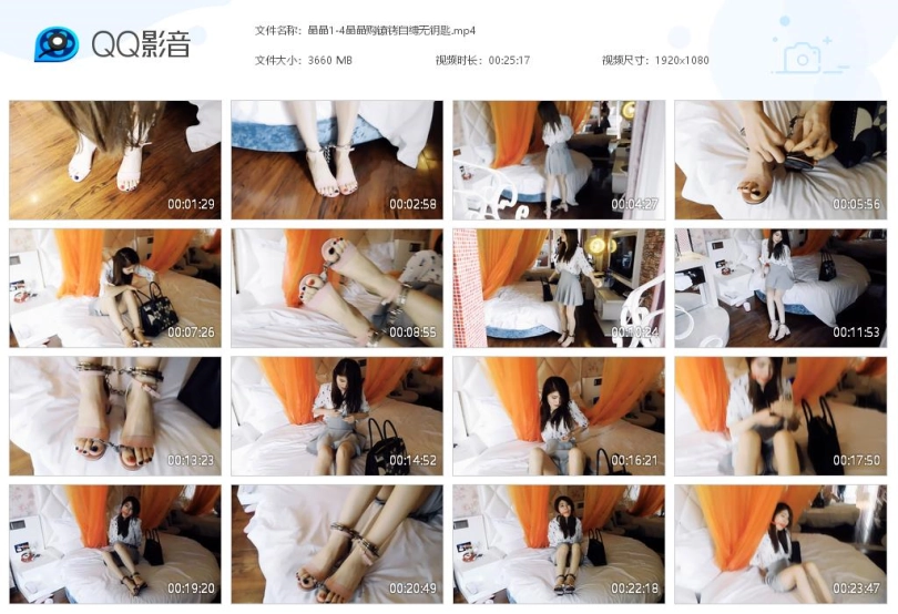 【视频时长】:00:25:16 【文件大小】:3660M 关键词:晶晶 镣铐 自缚 无钥匙 手铐 脚铐 脚趾铐 时装 高跟鞋 自缚 口球 可爱的ol晶晶,由于独守空房十分寂寞,在一个神秘老板的推荐下,买了一包镣铐玩具!!!刚回到家就迫不及待的戴上了,玩了一通之后发现没有钥匙,这些可麻烦了哈哈哈!!!自缚有风险,操作需谨慎,得保证有钥匙且可以够得到哦!!! 妹子带着一包东西回了家,是刚购买来的镣铐,妹子十分开心,决定玩玩刺激的。妹子首先找出脚镣,给自己锁上。妹子下地走,感觉十分刺激,非常有趣。妹子再次给自己锁上脚铐、链子脚趾铐,下地走,感觉更加刺激,非常有趣。妹子这次找出一个板铐,戴上口球,给自己塞入蛋蛋,手背后锁好,感觉达到GC,不断扭动身体。玩了一会,妹子想找出钥匙解开自己,够到包,却怎么也没找到钥匙,包内已空无一物。这时妹子才想起来,买的时候似乎就忘了给钥匙,这下麻烦了。妹子不停挣扎,企图弄下镣铐,却无济于事,而且蛋蛋也十分的痒痒,想关掉它却也够不到。最后妹子一直挣扎,着急的哭了。 ![]() ![]() ![]() ![]() ![]() ![]() ![]() ![]() ![]() ![]() ![]()