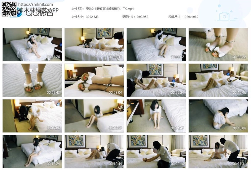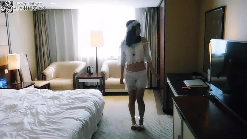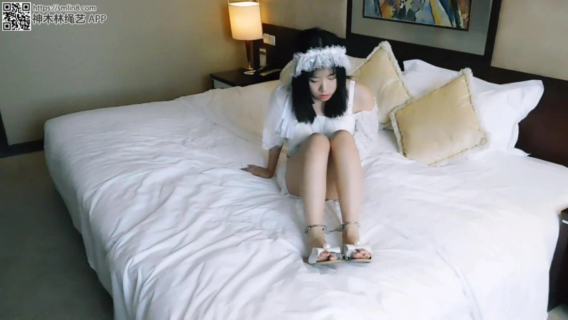 新娘妹子自己进来,等不来人接她,觉得很累就躺下睡了。坏人出现,然后穿着凉鞋,锁上链子脚趾铐、脚铐,然后离开。妹子醒了,然后发现脚被锁住了,很着急,各种喊叫,找钥匙,下地走。之后累了,又继续睡觉了。坏人再次出现,脱下凉鞋,给妹子锁上板铐、2个脚趾铐,然后离开。妹子醒了,然后发现脚被锁的更紧了,十分着急,各种喊叫,找钥匙,下地爬。这时坏人再次出现,妹子受到惊吓,被锁上背铐,拿出三筒把脚腕脚趾连起来,挠脚心。