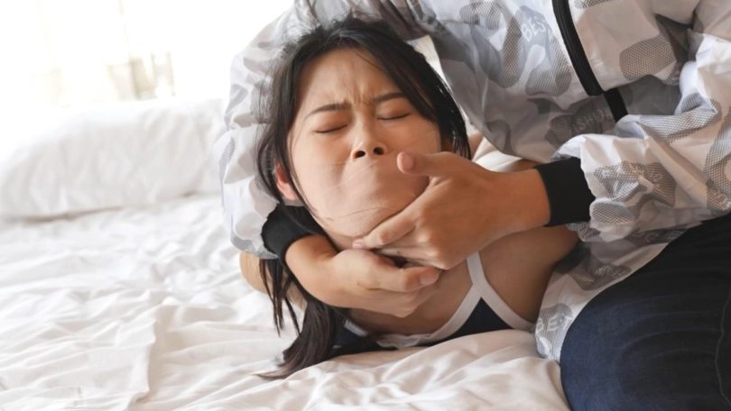 这次没有穿丝袜,原生光腿裸足,大长腿和嫩足很亮眼。可能是扎带太紧,到后面低血糖犯晕了。