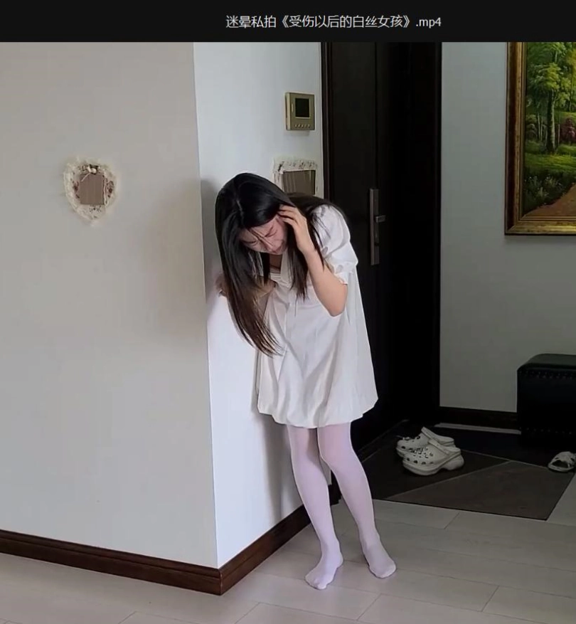 女孩刚进家门,脱掉鞋子关上门,只穿丝袜走了几步,突然发现头有点晕,走路也走不稳,踉踉跄跄,差点摔倒,扶了一下墙才勉强没有摔倒。