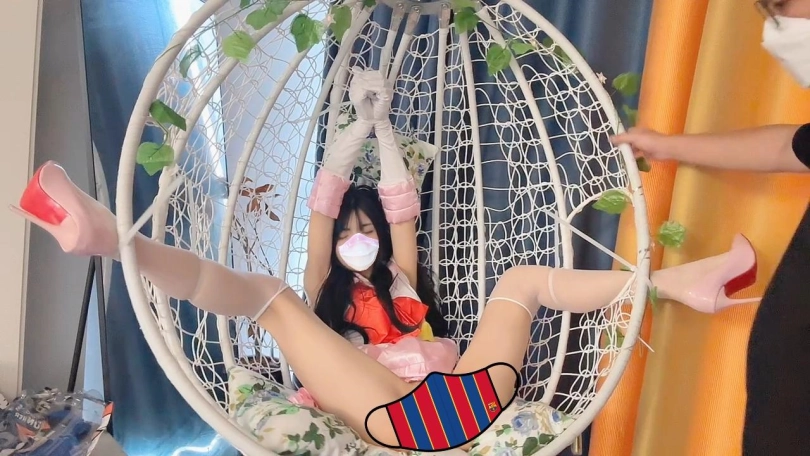 蒙面大叔入室绑架了一名正在看书穿着卡哇伊服饰的一名白丝高跟美少女,由于没有绳子,找到了一些扎带,灵机一动,将她迷晕过后三下五除二固定在了吊篮上,然后开始翻箱倒柜,居然发现这个小美女也是一个浪荡之女,抽屉里居然有各种道具,随手拿了一个棒子开始进行喜好之事,一番运动过后,再抱到床上,,,,,