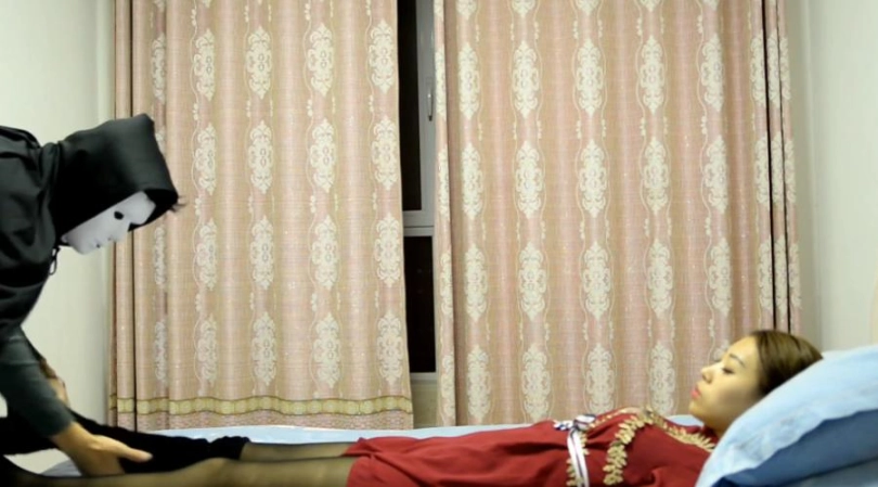 上次男主被女主不小心定住后自行冲开穴道,女主回来弯腰扶起他时定住女主,抚摸调戏女主后,女主不服要求解开PK,没几下就被男主点穴定住,几次后女主玩不过想逃跑才拉到门就被点住腰间的穴道,为了惩罚她,男主把她搬到床上玩弄她,男主把女主干到服服帖帖,女主为男主锤腿,最后男主继续定住女主,等他需要享受时再解开女主