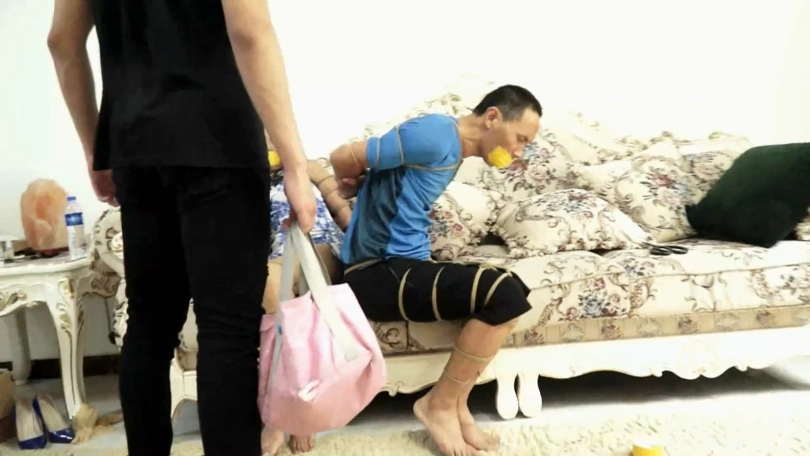 【视频时长】:00:33:56 【文件大小】:1116MB 穿着青花旗袍的美女夏炎面带微笑回家,发现男友坐在沙发上被五花大绑,嘴里带着塞口球。 看见剧烈挣扎呜呜闷哼的男友,夏炎不赶紧给男友松绑,反而以为男友在玩自缚游戏,对被束缚的男友加以嘲讽。 笑嘻嘻的夏炎浑然不知身后的墨镜口罩劫匪靠近,没反应过来男友的呜呜挣扎即被劫匪捂嘴控制。 劫匪让夏炎脱掉脚上穿的高跟鞋和穿的一双白色锦纶丝袜,让夏炎取下男友嘴里的塞口球,把白色锦纶丝袜塞到男友嘴里,夏炎不情愿照做了。 随后劫匪威胁夏炎不许乱动,将其五花大绑,双腿和脚踝并拢捆绑结实,现在夏炎和她男友一样了,任人宰割。 劫匪脱掉夏炎男友脚上的鞋和穿的一双肉色锦纶丝袜,捏住夏炎鼻子迫使其张大嘴,将两只锦纶丝袜一只只塞入夏炎的口中,塞得夏炎直恶心,表情痛苦。 劫匪用黄色电工胶布分别封在夏炎和夏炎男友嘴外,威胁沙发上二人不许乱动,进卧室继续翻找财物。 夏炎和男友互相呜呜呜闷哼抱怨着,扭动身体挣扎,可绳索纹丝未动,二人挣扎一会儿后想背靠解绳,没想到被收拾好财物的劫匪发现了,劫匪随即将二人捆成驷马,趴在地上。 劫匪用粉色静电胶布和黑色自粘绷带,沿夏炎和夏炎男友嘴外一圈圈缠绕着,有美国老狼和老狼女友GRM的风范。最后,劫匪拿手机给地上窘迫情侣二人拍照,还故意在二人眼前晃了晃加以羞辱,带着抢来的财物离开了。 夏炎与男友愤怒地在地上剧烈扭动身体挣扎着,挣扎了半天还是无济于事,最终二人精疲力尽,低下头无助地呜呜呜闷哼喘息着。 看点:五花大绑、驷马、男女连缚、交换原味丝袜塞嘴,胶布绷带多重缠绕封嘴,裸足脚面特写。 ![]() ![]() ![]() ![]() ![]() ![]() ![]() ![]() ![]() ![]() ![]() ![]() ![]() ![]() ![]() ![]() ![]() ![]() ![]() ![]() ![]() ![]() ![]()