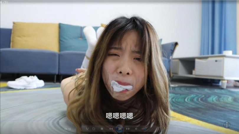 【视频时长】:00:22:53 【文件大小】:917MB (大量台词的剧本,剧情很精彩,视频带字幕,结尾同样有花絮,欢迎欣赏) 娜娜费劲千辛万苦终于找到了一把剪刀,可在她拿到剪刀的一瞬间,小杰从她手里将剪刀夺走。为了防止美丽调皮的娜娜老师再次想办法逃走,小杰将娜娜牢牢地绑成了驷马束缚。娜娜扭动着身体,发现自己再也无法站起身蹦跳,也无法挣脱身上的绳子。她能做的,只是威胁小杰给她松绑,否则将会告状。娜娜的威胁激怒了小杰,他用袜子堵住了娜娜的嘴,并且用透明胶带把娜娜的嘴巴封死,这样,娜娜老师就没办法说话,也不能威胁到他了。被强行堵上嘴的娜娜非常愤怒,她不停地呜呜呜叫着,扭动着身体想要挣脱绳子的束缚,可是无论她怎么努力,也无法摆脱被捆绑和被堵嘴的命运。更糟糕的是,小杰意识到了娜娜穿着白袜的脚还有一定的活动空间,所以他用另外一根绳子,将娜娜的大脚趾隔着白袜绑在一起,并且拉紧连接到上半身。这样,娜娜的白袜脚只能保持绷直的状态。可怜的娜娜老师现在已经被绑得动弹不得,但是她还是很努力地在地上蠕动,企图朝着大门的方向移动。终于,过了很长一段时间,家长回家了。家长开门的一瞬间就看到被绑成粽子趴在地上的娜娜。他连忙把娜娜的嘴松开,问是不是有贼闯进了家中。娜娜委屈地说自己是被小杰绑成这样的,暴怒的家长立马冲进房间去收拾小杰,他好像忘了一件什么事——我们可爱的娜娜老师,依然还被绳子紧缚着,她扭动着身子在地上大声呼喊着,能不能先帮自己松绑...... ![]() ![]() ![]() ![]() ![]() ![]() ![]() ![]() ![]() ![]() ![]() ![]() ![]() ![]() ![]()