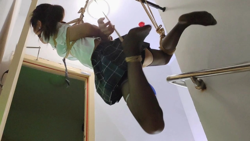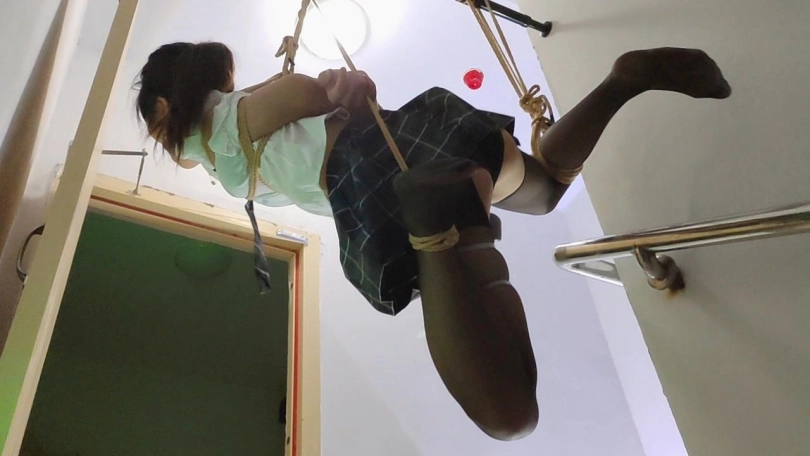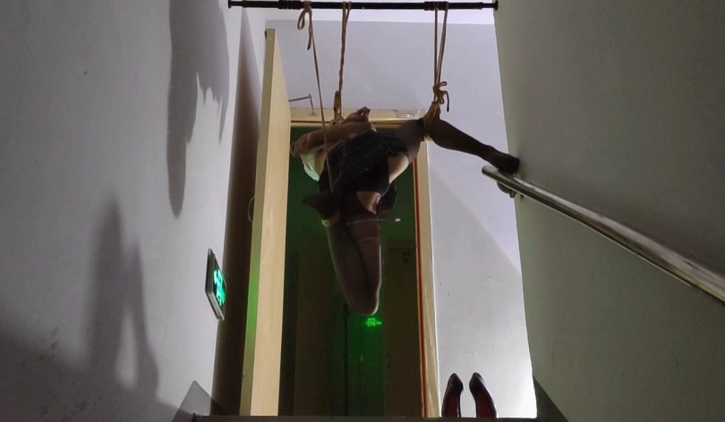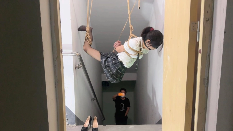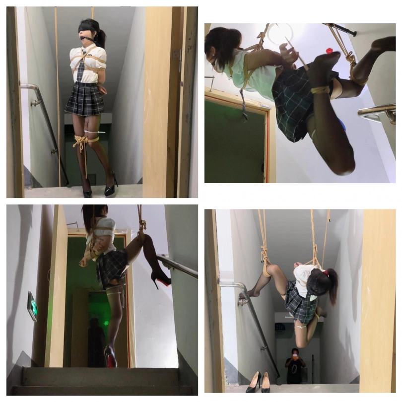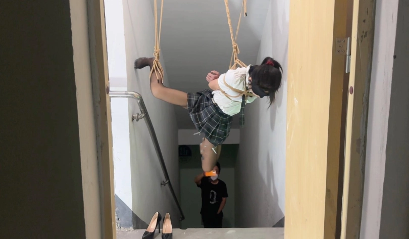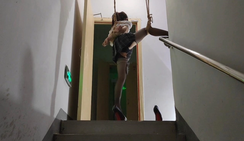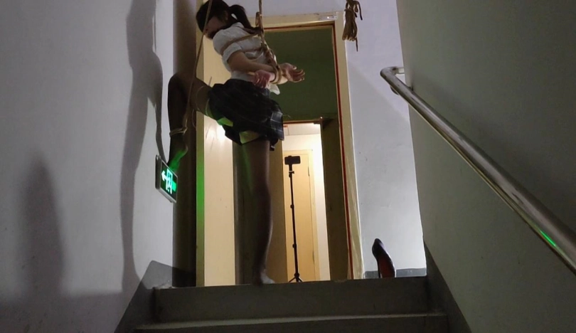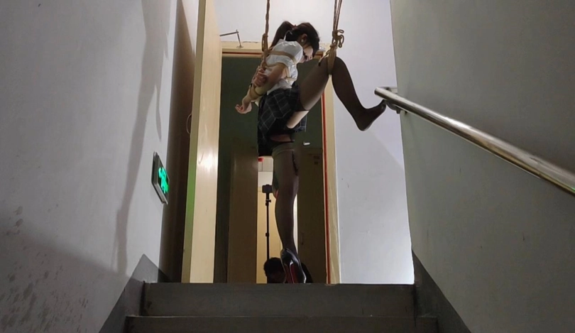 终于把丫丫骗到了楼梯间吊了起来,吊好之后留下摄像机,大叔一溜烟就跑了,留下丫丫一个人吊在那里孤独无助的挣扎,完事之后娃娃说她一个人在哪里又痛又爽,又不敢大声的呜呜声,生怕吵到其他人出来看到了,最怕的就是吊着的这根杠杆掉下来了,不过整个过程还是刺激到爆棚,,,全程毫无尿点