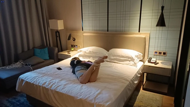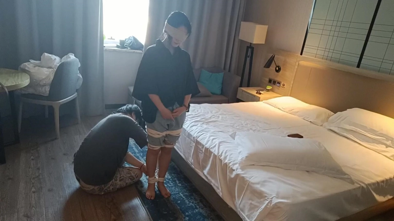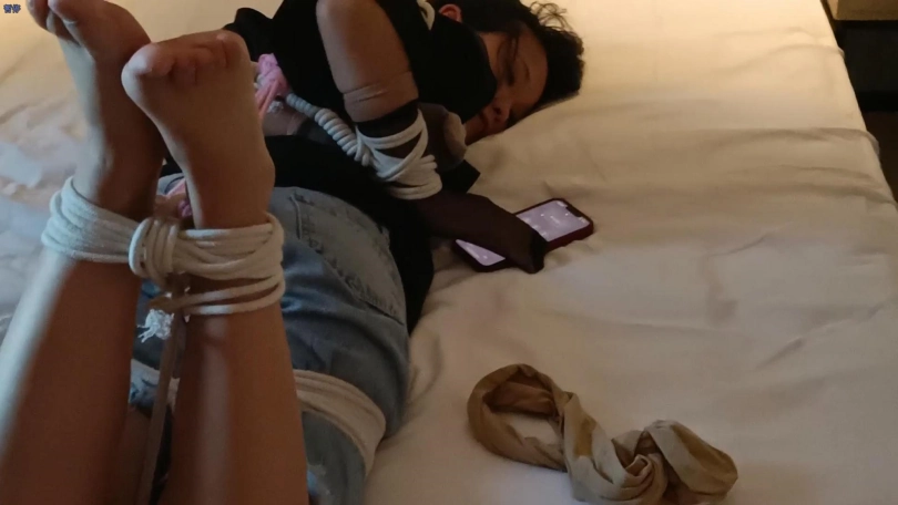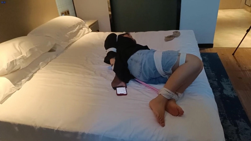 上个月和她小玩了一下,这回用的很紧的棉绳,还用四只短丝袜把她的手给包上了,只有把手机解锁才放开她,隔着两层丝袜根本没办法点手机,尝试了三次之后还是失败了,最后疯狂骂我才给她解开