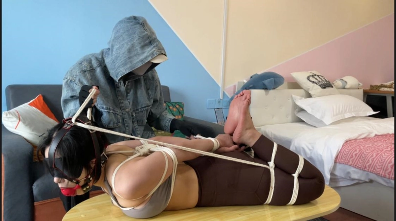驷马捆绑放置 让小美戴上5cm马具口球 绑上驷马姿势进行tk挠痒放置 (不得不说大口球流口水的作用真的是拉满 没多久口水哗啦啦的流)