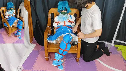 战败的魔法少女碧蓝,在刑椅上被固定起来,嘛,本来就是杂鱼的碧蓝被摆成一个翘起二郎腿的样子,明明自己是杂鱼还摆成这种姿势,真是雌小鬼呢,那就更要好好的惩罚一下啦!!!