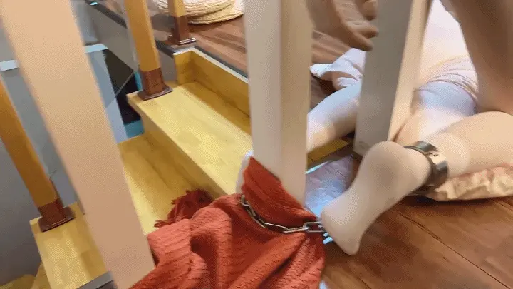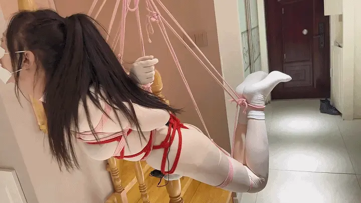 首先到哪看到有能吊人的地方就想试试吊缚。所以直接将晴绑了驷马吊缚,这次把手吊得很高,根本没有任何活动空间,打开训练器变成无情的gc机器。这次准备了脚铐手铐,往柱子上一卡根本无法逃脱,甚至都不能很好的活动,身体的前面就毫无保留的暴露,训练器训练的同时戴上口环和[X_X]口塞折磨,十分羞耻。