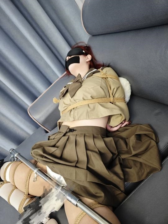日式后手+分腿缚用不锈钢伸缩杆撑开,中门大开露出小裤裤。疯狂强制到gc。