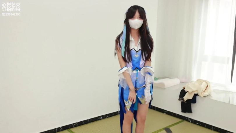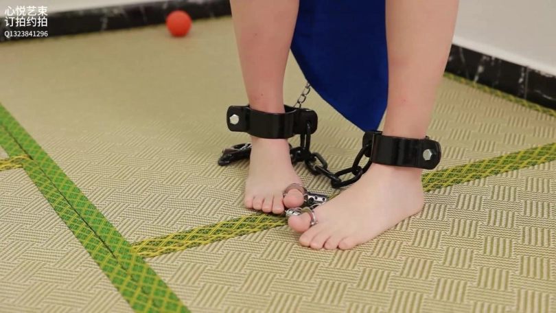 嘉嘉这次是全身戴满手铐,脚镣,项圈,拇指铐。大约只留下10里面左右的迈步幅度。在房间里体验囚犯的一天。把项圈用链条链接在天花板上,再顺下来链接手铐,脚镣。进一步缩小活动范围。最后实在忍不住还是把嘉嘉放下趴着好好玩了会玉足。