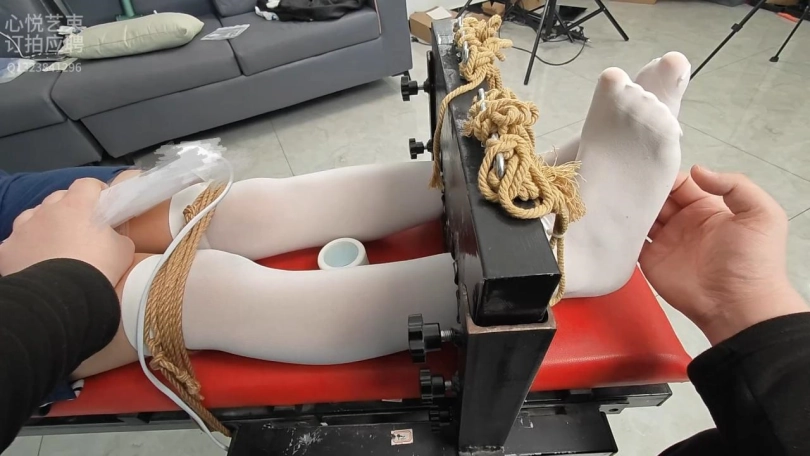 欢欢白丝单马尾老虎凳脚枷TK+强制,口球堵嘴求饶不能。欢欢最怕痒的腋窝被长时间袭击,拼命的在椅子上挣扎,左右摇晃,我都怕给我的椅子弄塌了。可惜手腕的束缚让欢欢只能左右摇晃,始终有一边腋窝是要收到我的袭击的。只能选择是挠左边还是右边。最后挠到连连求饶,震到小裤湿湿。