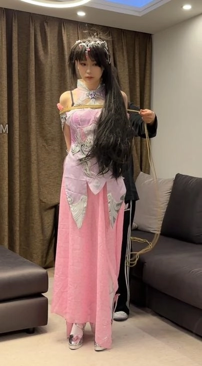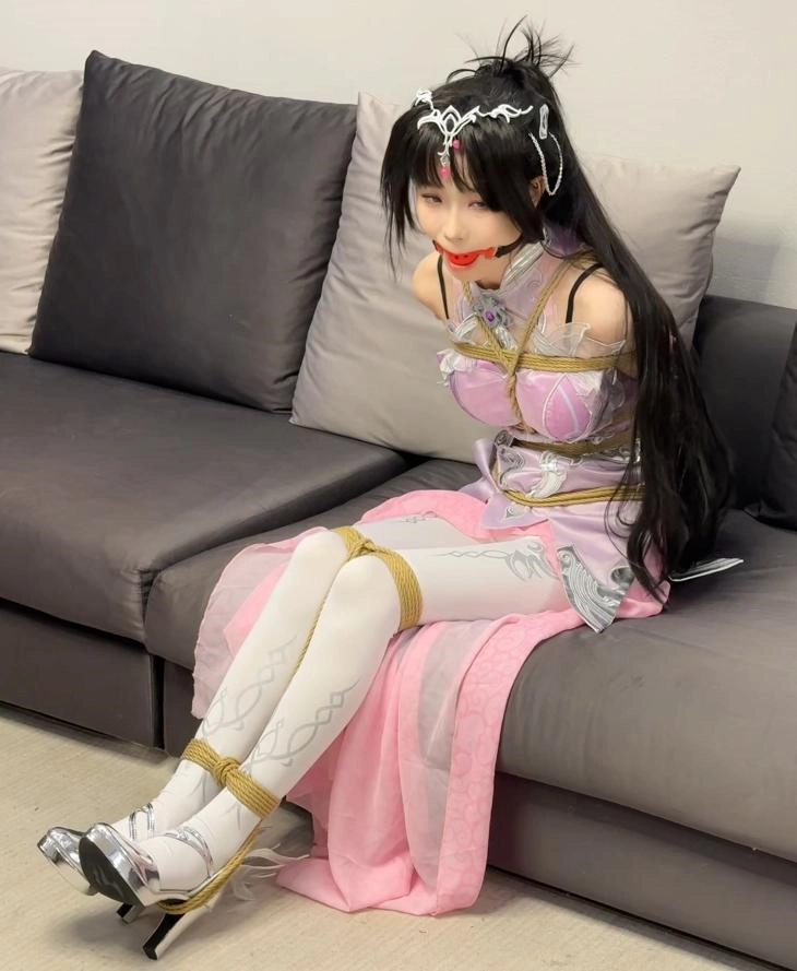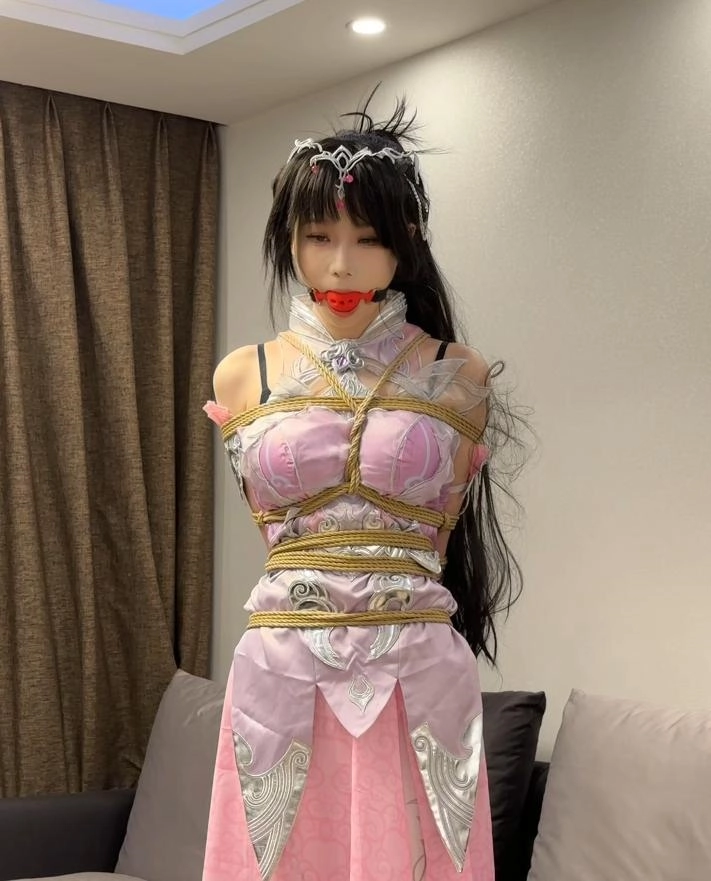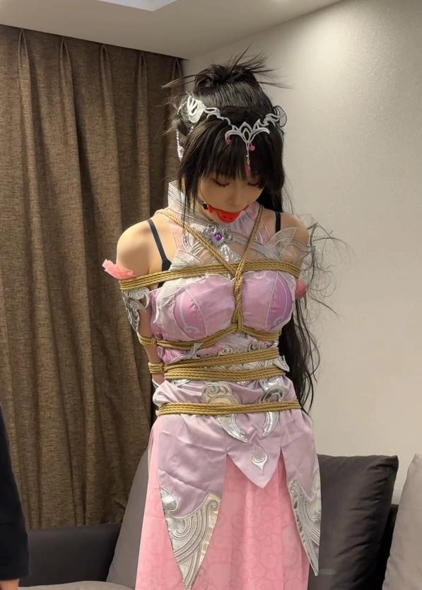 模特倩倩,小舞cos,倩倩的颜值身段还是挺适合cos小舞的,头发稍微有一丝飘逸,不过并不影响小舞姐的盛世美颜,口球堵嘴,流口水,挠脚心,全身紧缚加调教。