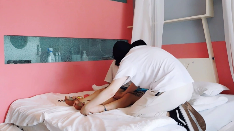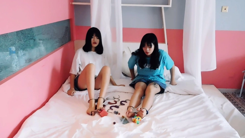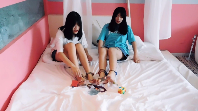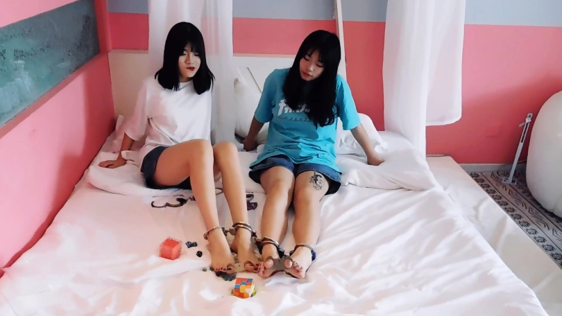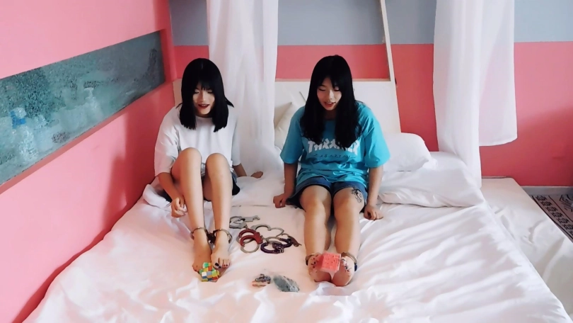 俩妹子都是03年的刚18岁喔!!!不过看起来跟有不良少女的味道,有纹身不说还热衷于抽烟,让敝人着实觉得别扭!!!俩妹子和镣铐的组合,那当认识把他们乱铐一通啦,一人出一只脚,再也动不了哈哈哈!!!