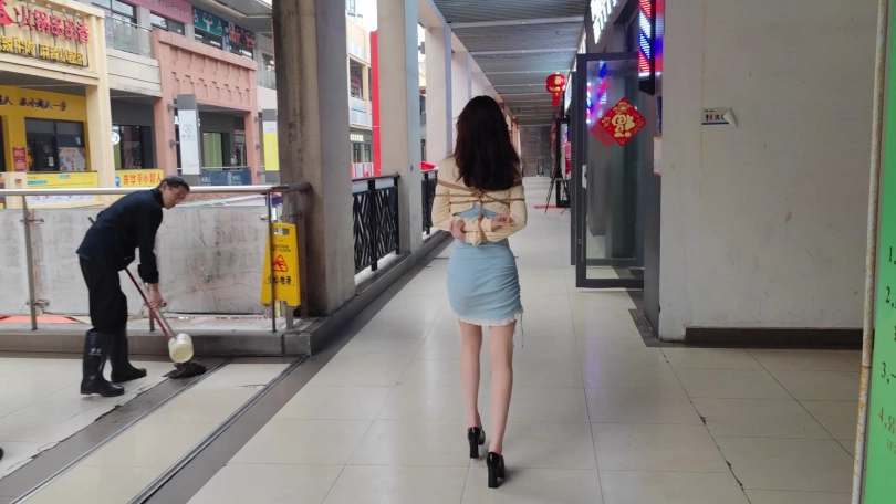 9厘米超高跟鞋 万达商业街真实捆绑外出 购物身材超好,奶茶店小姐姐一脸好奇