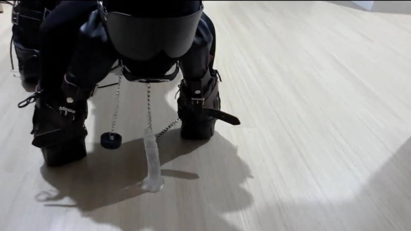 之后带上开口器 强制嘴巴张开 这个还是比较辛苦因为开口器对小鱼来说有点大 把水晶JJ立在地上让小狗自行训练 这次先来个初步的 下次再让它深喉