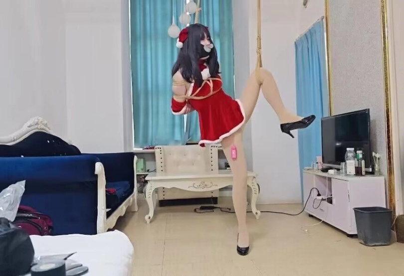 圣诞节没来陪主人玩的小m,被主人抓回家中进行调教。被强制盘腿,嘴巴里还充满了粘液被口球堵住。鞭子,[X_X]的惩罚是跑不掉的了。甚至被单腿吊起来,无法遮蔽的风光一览无遗。也无法阻挡主人用筋膜枪给自己带来的刺激。