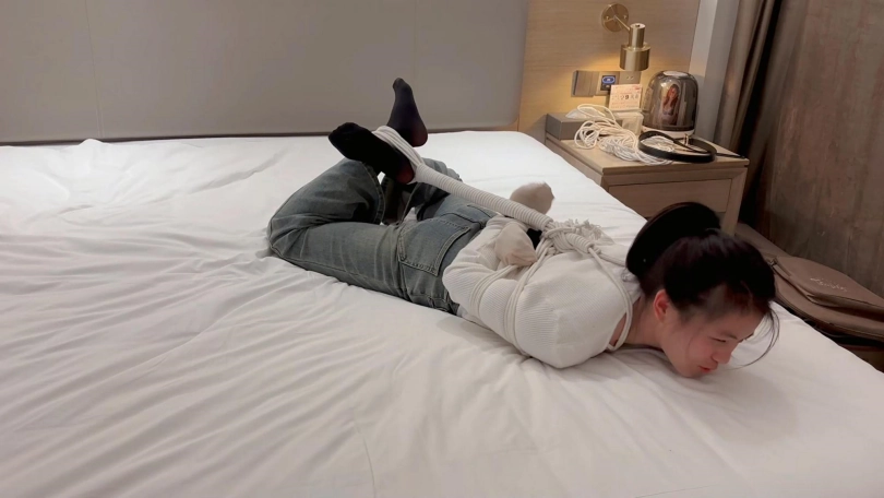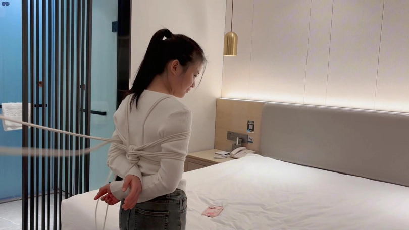 新认识的大一妹子,第一次体验捆绑,绑了一个日式驷马,再把她的两双袜子套在手上,让她自己试着解开,解了好半天没解开就换了个简单点的挑战,拿到手机解锁,试了好久终于成功了