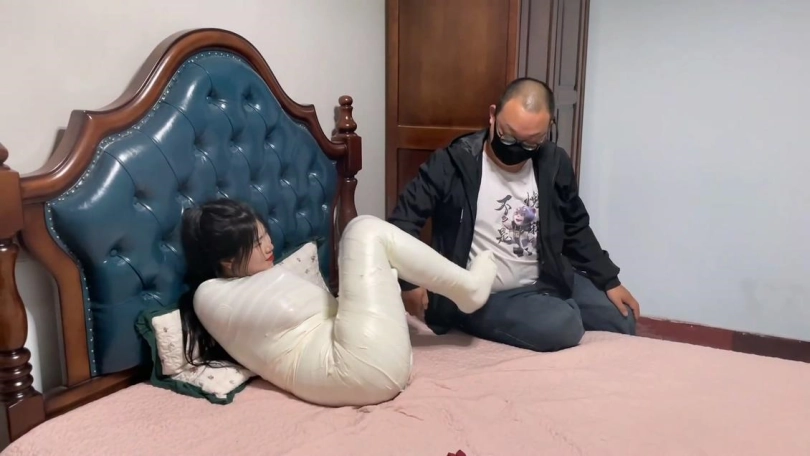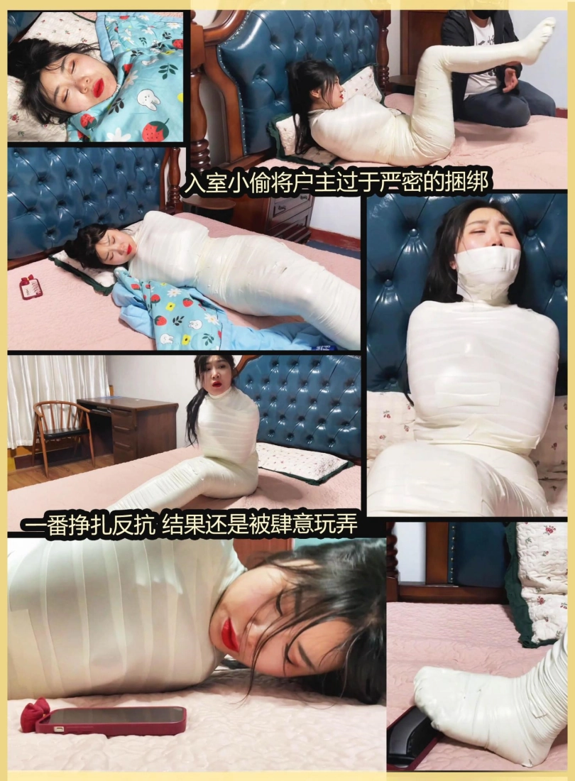 吴晗迷迷糊糊的醒来。发现自己不能动了,她挣脱弄开被子,发现自己的身体除了脑袋都被木乃伊捆绑了。她一脸懵逼从床上坐起来。听到卧室外小偷正在搜刮的声音。原来家里进贼了。