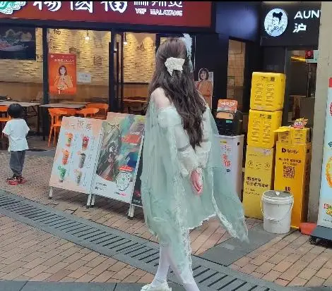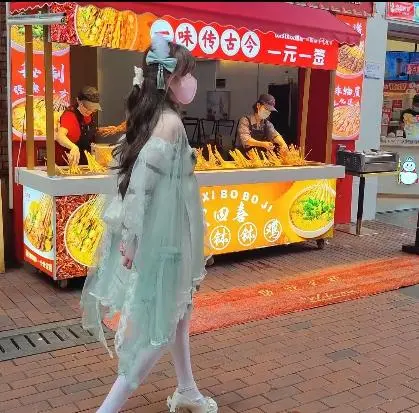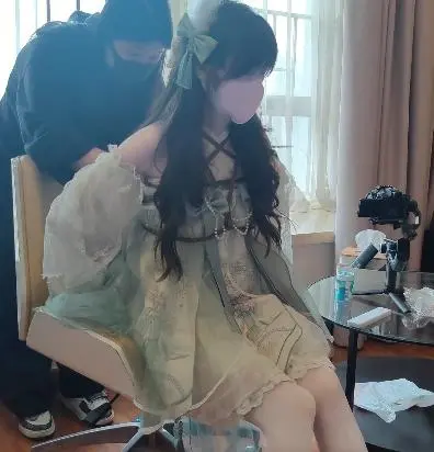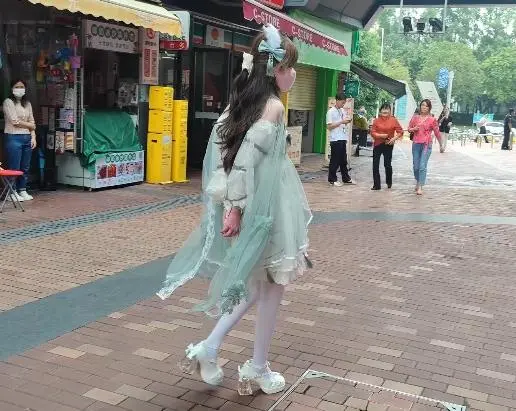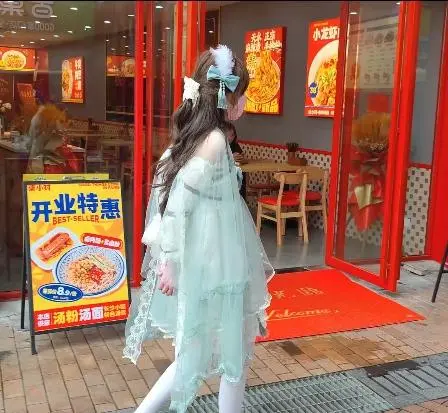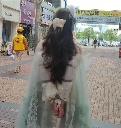 模特芊橙,身材颜值都很棒,户外系列,在人特别多的购物广场,穿Lolita服,接受捆绑穿过各种人群,体验处于尴尬的境地。