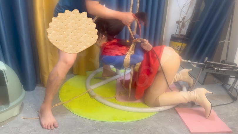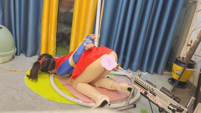被打扮成女超人之后,本来还有一种拯救地球的自豪感,当被绑起来之后,瞬间就没有那么高调了,,,低人一等的感觉立马就来了,,前后左右挨着被捆绑调教了变,身体被掏空的女超人!!