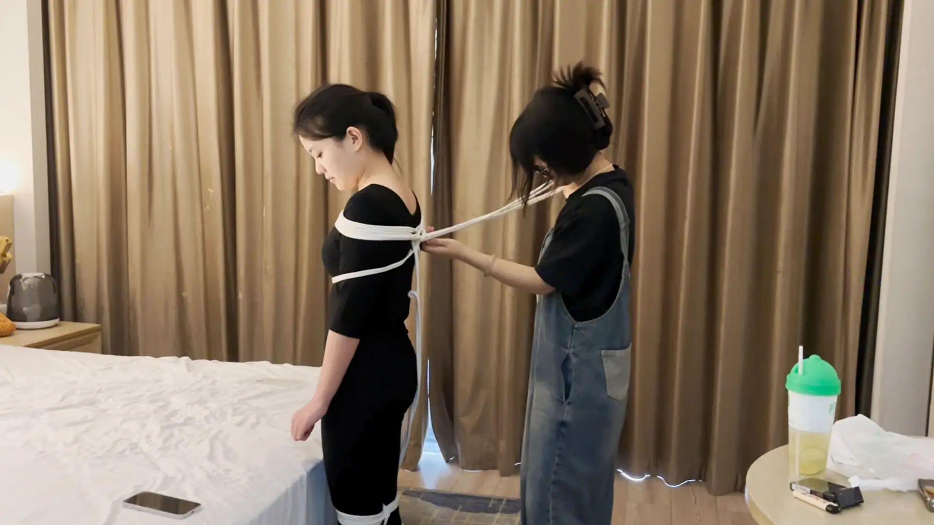 学姐最近手痒了,想找个人好好绑起来挠一下,正好约了和她同专业的学妹,结果学姐下手太黑了,一个劲挠她不说,还用绳子抽人家屁股,最后嫌喊的声音大直接用臭袜子把学妹的嘴巴塞上了,估计学妹以后都不敢和她玩了
