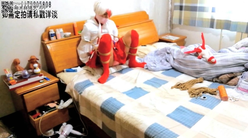 后面的碎碎念:大概介绍下,网上意外看到了M字开腿的,绑法,自己试了下,顺便穿了不止一层胖次,觉得看到胖次的,可以不用那么兴奋,这跳蛋相当舒服来着~~~衣服大小深深地讽刺了咱的体型,受到了成吨的精神打击。