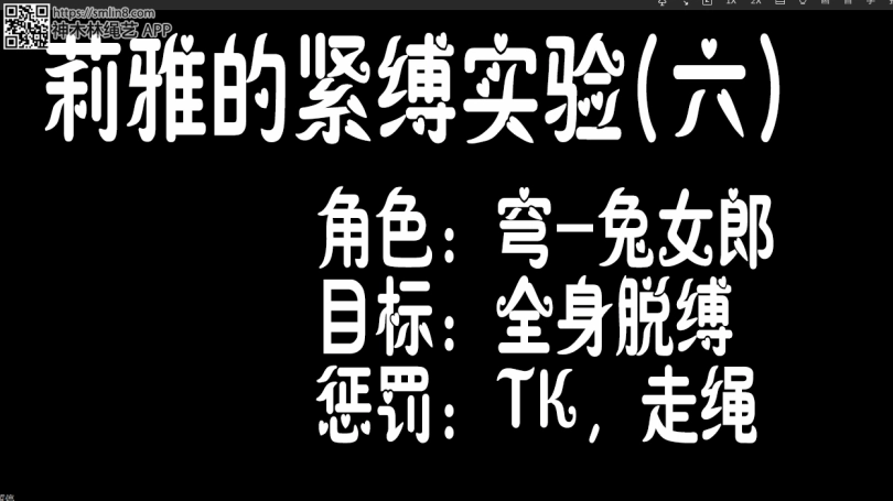 剧情简介:参照紧缚实验,20分钟捆绑挣脱,失败惩罚为TK+走绳~