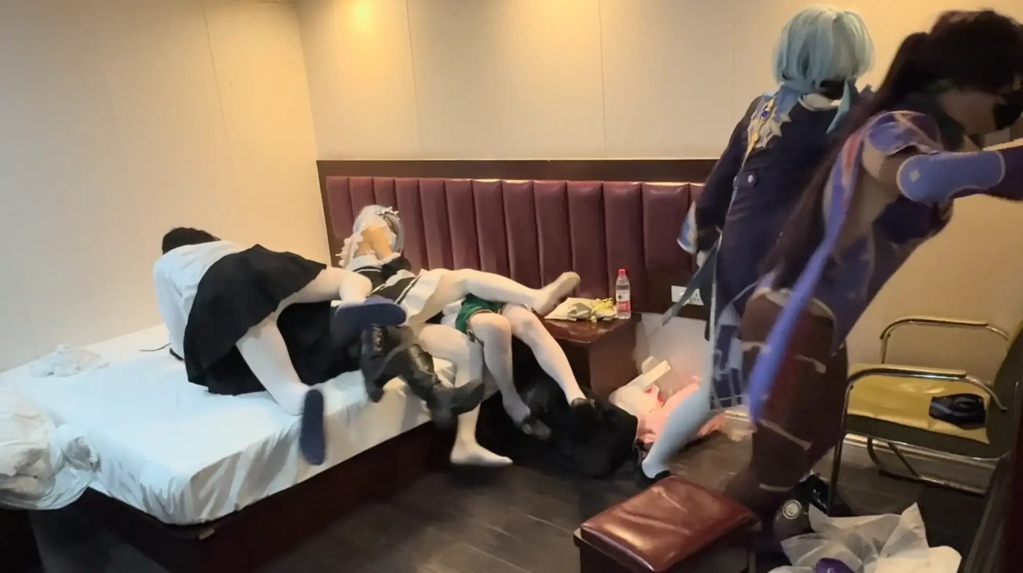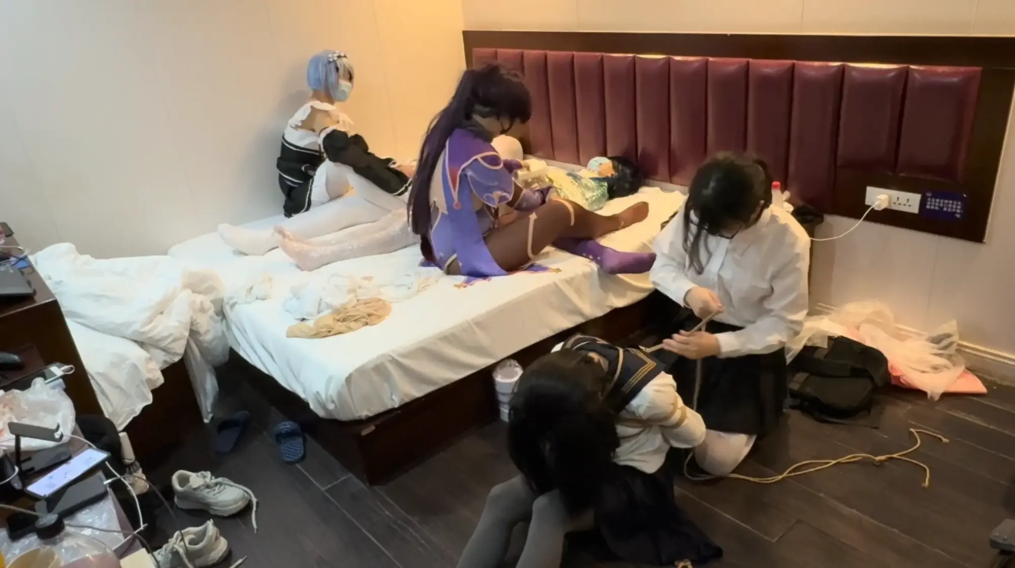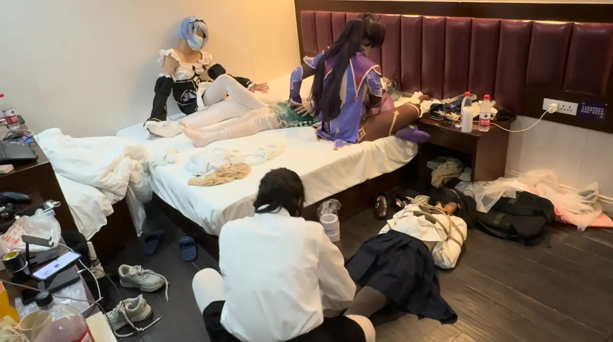 漫展结束后,约好互相捆绑的几人来到酒店房间,殊不知主持活动的蕾姆已经被闯入的人贩悄悄替换,毫不知情的男孩们正在落入假戏真做的陷阱……