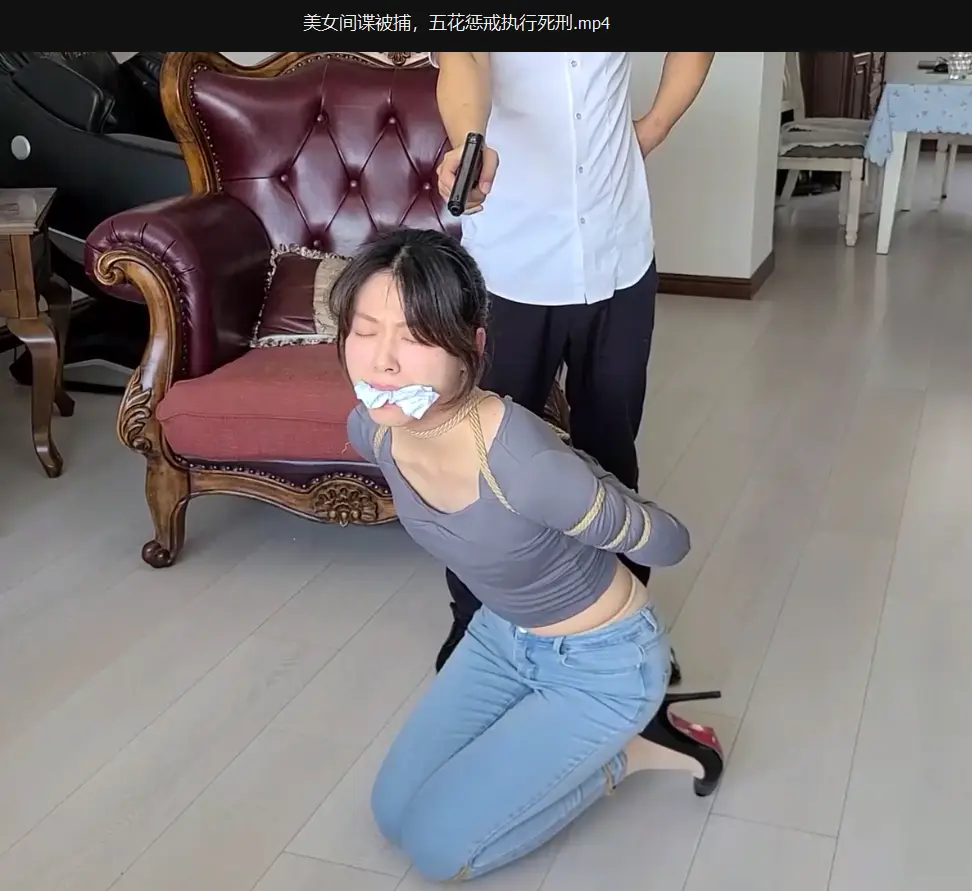 女间谍薇薇执行刺杀黑老大任务,谁知黑老大早就买通她的同伙,把薇薇手枪做了调包导致刺杀失败被捕,黑老大将薇薇五花大绑[X_X]捆紧拷问,臭袜子堵嘴鞭打折磨,薇薇宁死不屈一个字也不说....黑老大气急败坏将她五花驷马紧缚,用她的高跟鞋扎她的脚心,扎她的[X_X]扎她的[X_X],被折磨满头大汗的薇薇就是不肯说一句话,丧失耐心的黑老大见其已经没有了利用价值,最后将薇薇押走执行枪决....