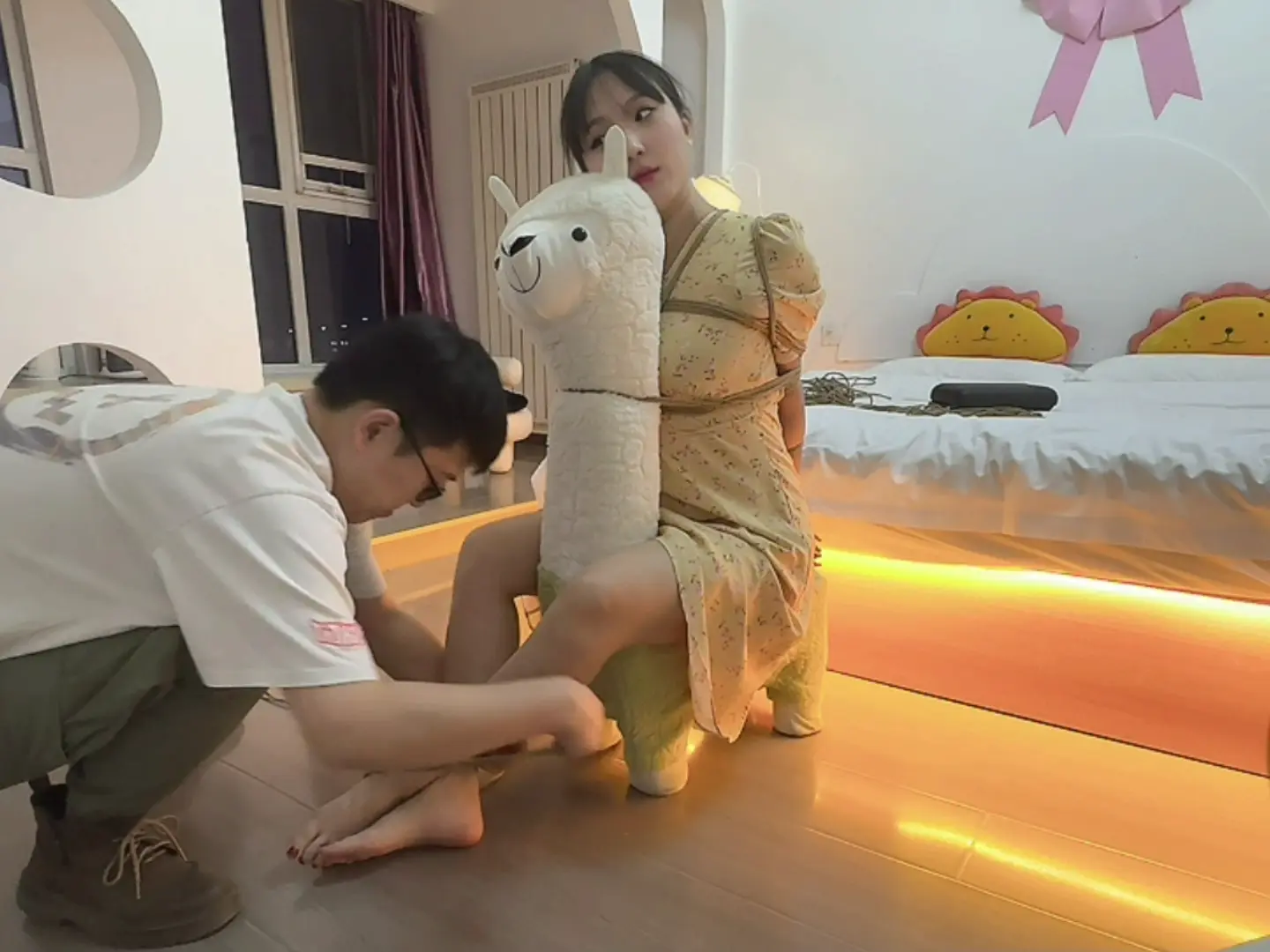 和可爱的诺诺小姐姐边绑边聊天,脱掉鞋袜漏出白嫩可爱的美足,挠挠痒痒体验绳艺的快乐