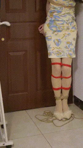 被绑得很紧,一开始手还能够到捆住腰部的绳子,费劲解开它之后就发现这是能解开的唯一一道绳子,摸不到绳子或者绳结的话感觉真的没什么机会挣脱吧。被绑住蒙上眼睛之后也实在是非常没有安全感,根本不能大胆放心地跳走,只有不断地靠在墙上才能安心一些。