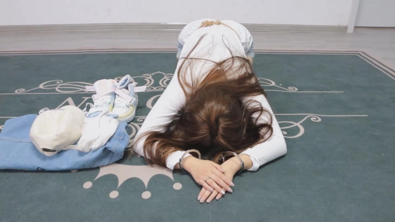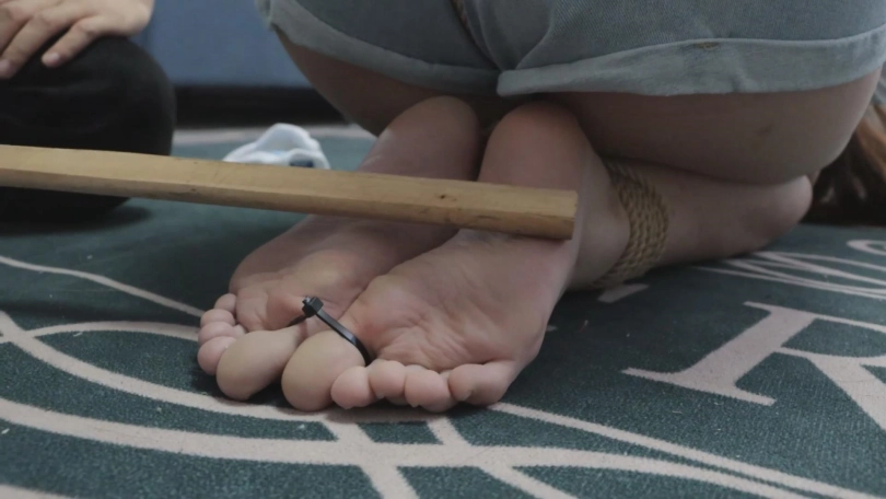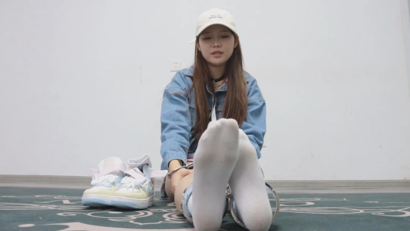 沈蜚已经接受了完整的改造训练,重新回到被捕的地点进行认罪流程,并且亲自承诺不再参与任何打拳行为,并且向观众展示自己游行时穿的脏袜子,但似乎只是口头承认还缺了点什么,于是将她用镣铐铐好后,用她的原味棉袜塞住嘴,再让她的脸埋进自己穿过的AJ里面(鞋里还塞进了自己穿过的原味袜子),另一只脏袜子就放在她的头顶,一边抽打她的屁股和脚底,一边要求她呼吸自己臭鞋的味道,倘若头顶的袜子掉落,则会被抽打的更狠,呻吟声绝赞!最后,将两只原味袜子用胶带黏在她的胸前,将她带走。