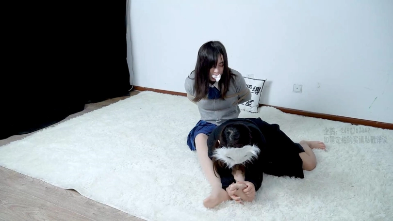 少女一个人在家无聊,用毛笔试图挠自己的脚心,但不太痒,正巧她的闺蜜来找她玩,看到这一幕一时兴起,演了一个入室的坏人,把她绑起来狠狠地TK