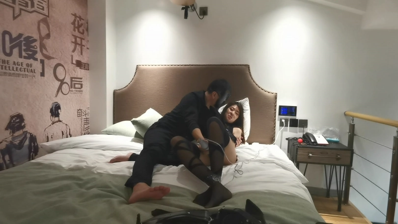 小插曲: 瑾萱一直这么被刺激着心里不平衡,对我说“要不你也来体验下这棒的感觉?”“好啊,只要你能用你被反绑的手拿到它就可以”。没想到她还真拿到了,看情况不妙本人赶紧背过身假装睡觉,谁知瑾萱看到后艰难的拿起棒棒对准我的臀部直接来句“看我爆你菊”。。 。哎,调皮!