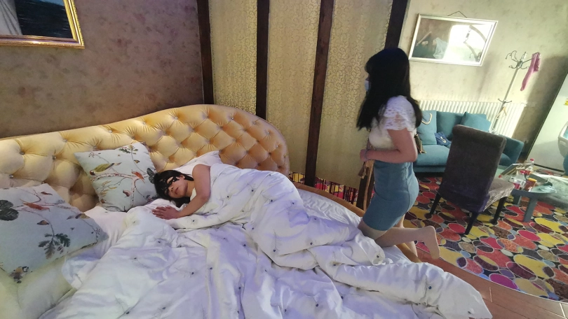 琳洛和凌熙是闺蜜,这天琳洛回来并向凌熙炫耀自己买的新款袜子,眼馋的凌熙想要穿上体验下,但小气的琳洛却不肯。于是凌熙趁着琳洛不在偷偷的穿了起来,并美滋滋的自拍,直到困意袭来睡去,这时琳洛出来看到睡着的凌熙腿上穿着自己都还没来得及穿的新袜子,心里很不爽,决定教训下她。趁着凌熙睡着用袜子把她全身捆绑起来。。。(丝袜、TK、丝袜堵嘴、绷带)