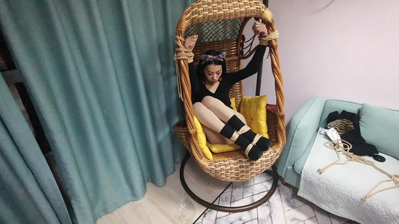 把她绑在吊椅上,带上口球和眼罩,胸部和[不可描述]分别用大小ZD棒伺候着,脱下靴子强制闻自己靴子的味道。并疯狂的闹其脚丫,一边被挠痒,一边身体敏感地方被刺激着,痒痒感和[不可描述]传来的快感同时体验着,只能无助的扭动脚丫和身体,最后慢慢变成无助的呻吟。。。