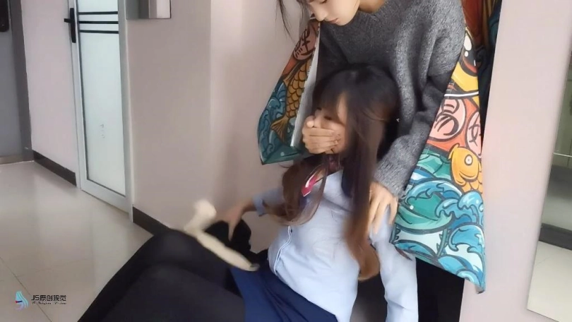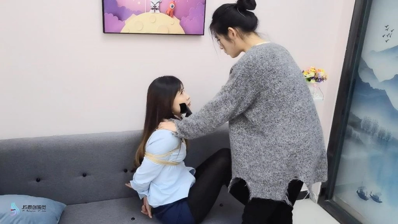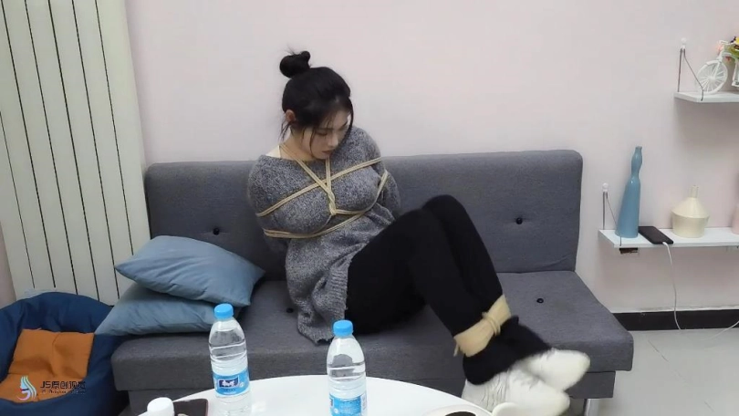 玖念最近没钱了,于是潜入了别人的家盗窃。房主正好回来,听到声音的玖念迅速藏起来。房主可苏回来后坐在沙发上按摩着自己的脚。起身准备洗袜子,就在可苏蹲下捡起不小心掉在地上的袜子时,玖念从身后捂住可苏的嘴,可苏惊慌的呜呜叫着。玖念将可苏捆绑起来,并问到了银行卡密码离开。但密码是假的。当愤怒的玖念回来想教训可苏时发现,可苏挣脱了束缚不见了。就在这时可苏从后面偷袭她。并将玖念捆绑起来并报警。被束缚挣扎中的玖念等待着警察的到来。。。