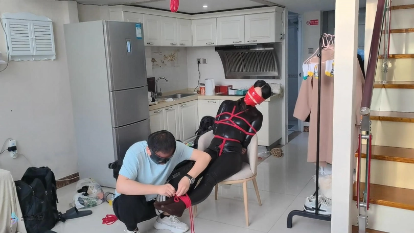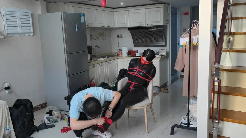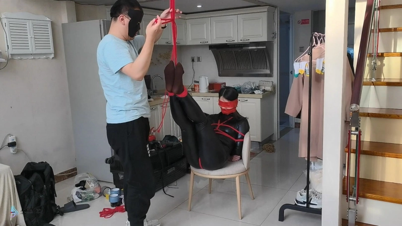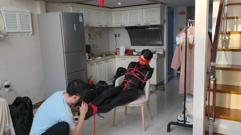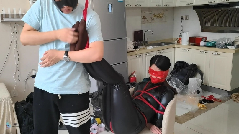 人贩脱掉诗彤的靴子,将她的双脚捆绑起来,并高高的吊起她的丝袜脚。不断的挠她的脚底,亲吻玩弄她的美足。在不断的折磨下,诗彤终于受不了了,她说出了幕后老板是谁。本以为人贩会放过她。但失去价值的诗彤,最终被人饭开枪解决掉了。。。