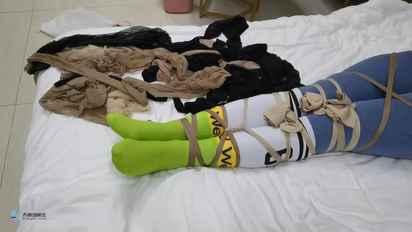 美女在外运动完回到家中,躺在床上休息。但是她忘记了锁门。一名劫匪悄悄的进入房间,并挟持了她。劫匪用她积攒没洗过的多天条丝袜,把她全身捆绑起来,嘴巴也塞进丝袜吧,并用胶带封上。劫匪不但劫财还要劫色。她不断的抚摸着美女。亲吻她的美足。搂着她入睡。当劫匪醒来时告诉女孩,告诉她乖乖的待着,他一会回来会有更好玩的。