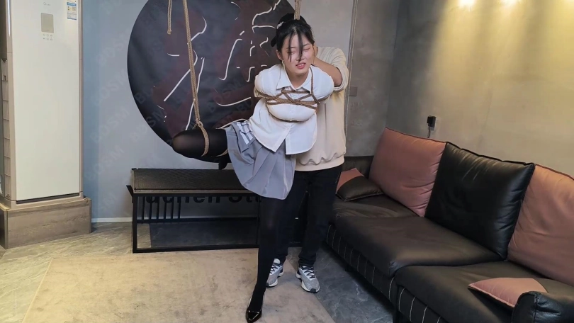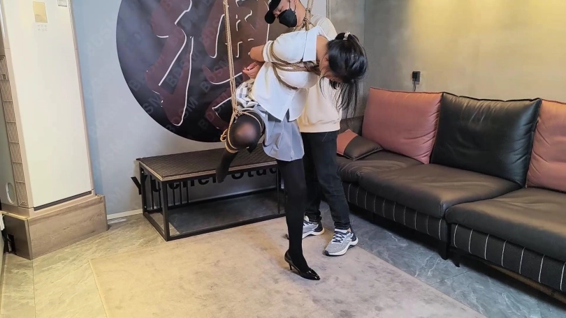 这不是赤裸裸的挑衅吗???二话不说,果断把这小丫头绑了起来,高跟踮脚,单腿吊绑,慢慢折磨她吧,哈哈哈……