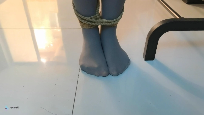 医生让女孩脱掉衣服,换上一双灰色丝袜。女孩的腿部被绳子一圈一圈的缠绕捆绑起来,双臂也扭到背后捆绑。用丝袜塞进女孩的嘴里,