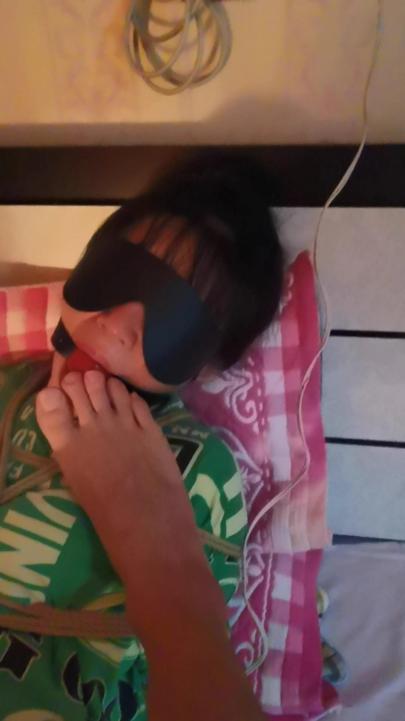 这是很早之前拍的了,偶然间认识的一位大姐。聊天中也不知道怎么把话题扯到捆绑上了。这大姐还挺好奇。恰巧戴着装备。就把这大姐给绑了。嘴里给她塞进去一个口球,眼睛蒙上。用快乐棒刺激她下面时,大姐全身一身,很快就发出很享受的呻吟声,脚趾也用力的撑开。这个片子主打的就是一个真实。