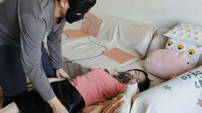 肉丝长腿美女沐兮的屈服下集(完结)沐兮被面具男捂晕后摸遍全身,最终屈服在面具男的白手帕下,成为了面具男的情人!