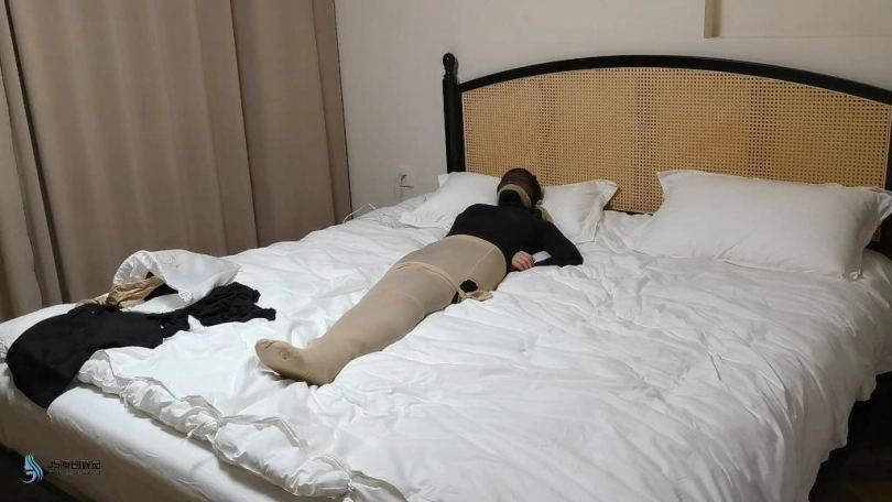 也将女贼的双腿套进一只丝袜里。醒来后的女贼不断的挣扎,女房主走了过来。用同样的方式挑逗折磨着女贼,玩弄她的脚丫。将脚放在女贼的头上羞辱她。最终女贼沦为了女孩的玩物。。。
