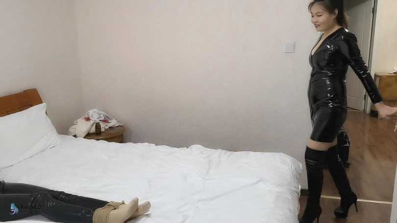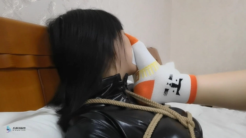 激辣在房间中被人捆绑,室友露楠回来,并没有给她解绑,而是坏笑的脱下靴子,将她在靴子里闷了一天的棉袜脚伸向激辣的脸部。。。