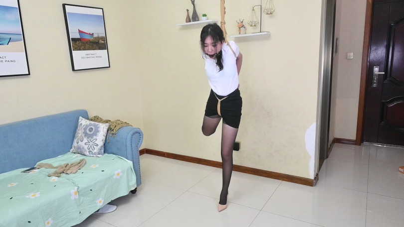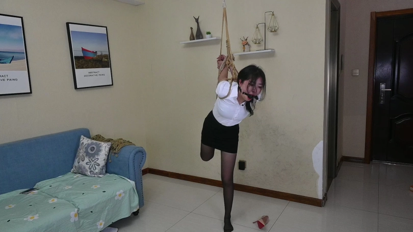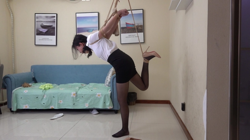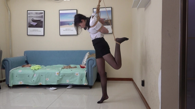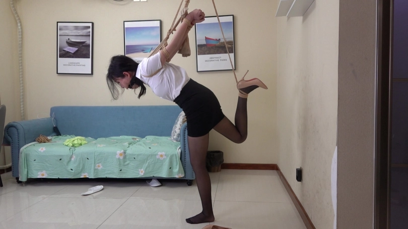 嫩模清扬身穿性感职场服装,包臀短裙搭配性感黑丝,演绎职场美女很是性感,尝试多种吊缚姿势,直臂曲臂,单腿吊缚,狠心的老板哥哥在单腿吊缚时还把清扬的鞋给脱掉了,赤足踮脚被狠狠吊缚,又几乎失去平衡的清扬只能痛苦的忍受